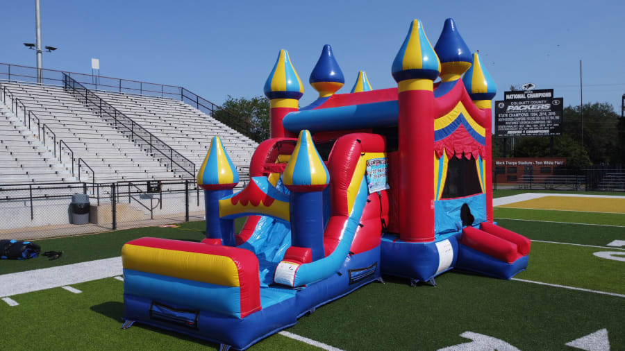 Bring the fair to your backyard with the Carnival Combo. This eye-catching unit combines jumping, sliding, and shooting in one compact inflatable. Perfect for birthday parties, school events, and neighborhood gatherings. Kids love the bright carnival colors and parents love the all-in-one convenience.