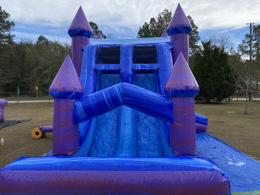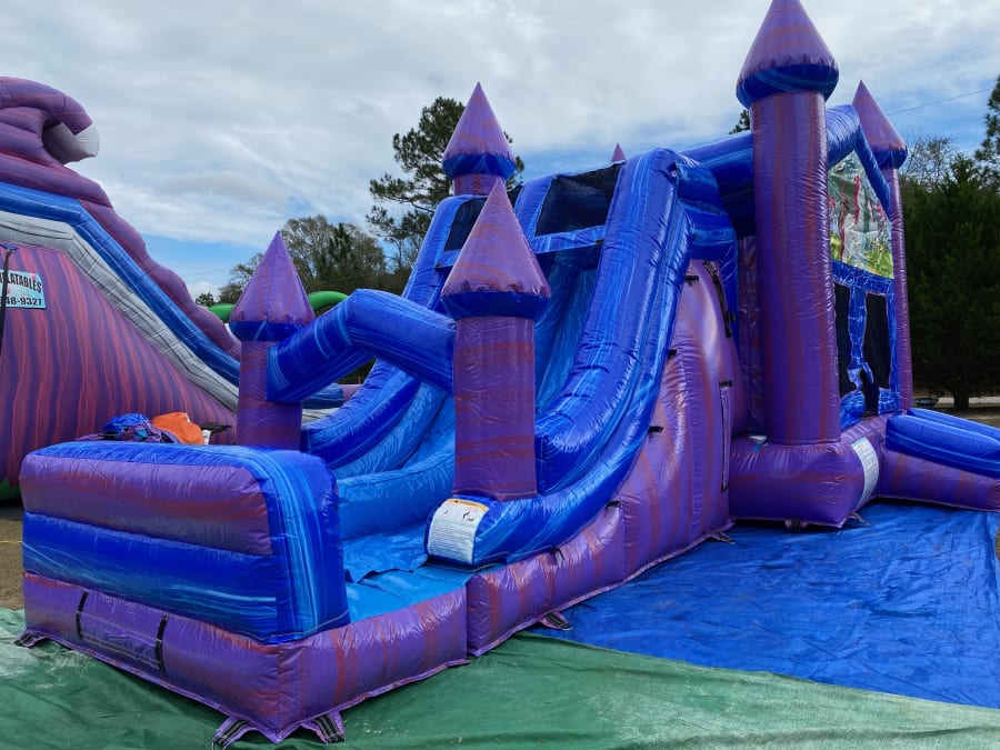 Bring enchantment to your event with the Mystic Castle Combo with Bumper. This eye-catching unit features a mystic theme and fun play options for kids. Ideal for birthday parties, school events, and community fairs. Includes the signature mystic combo with unicorn banner double lane with bumper at the end and basketball hoop for nonstop action. Fast setup. Durable materials. Safe play.