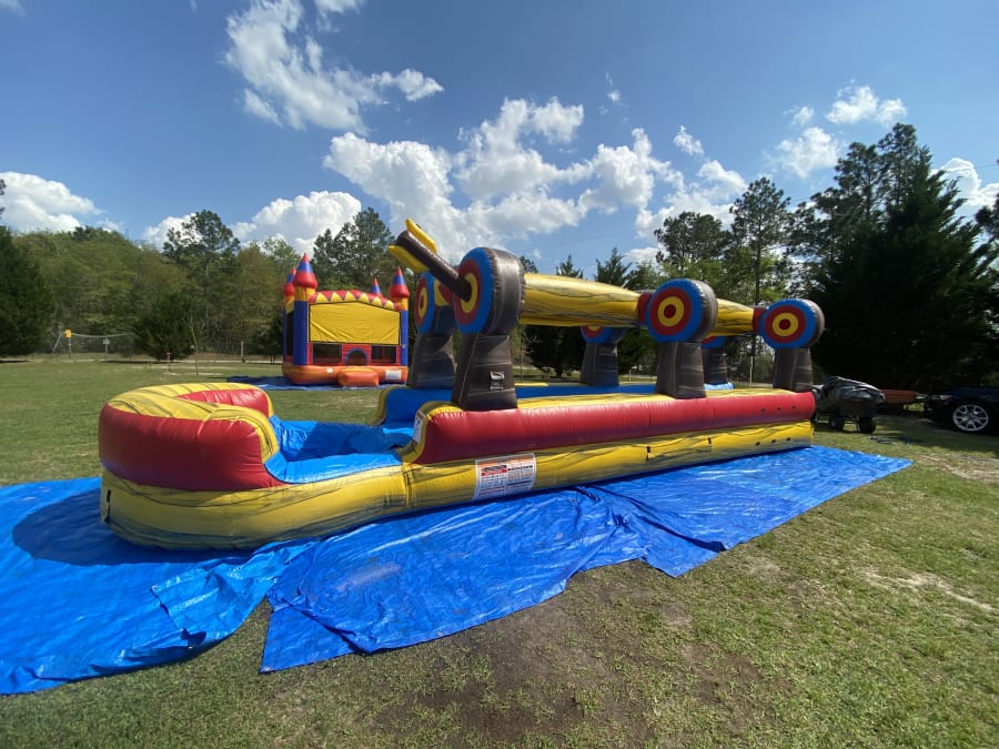The Target Slip n Slide delivers fast, wet, competitive fun for family and friends. This 28 ft long target themed slip n slide with pool at the end is built for speed and safe splash landings. It's a summer centerpiece that turns any lawn into an instant water park. Perfect for parties, weekend play, and active outdoor exercise.